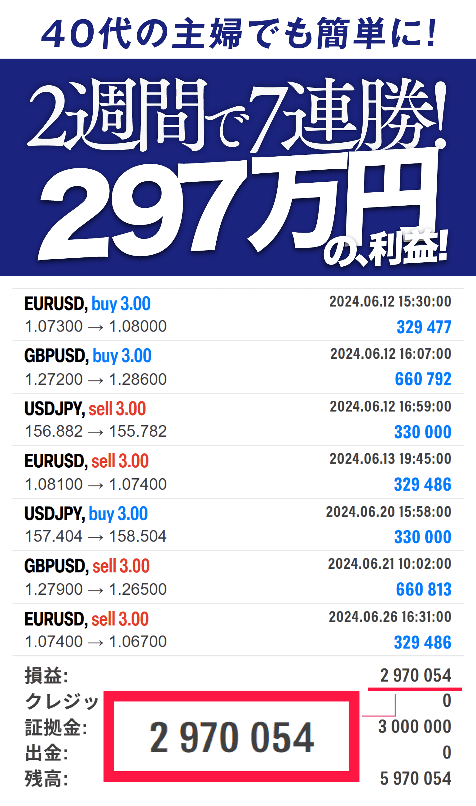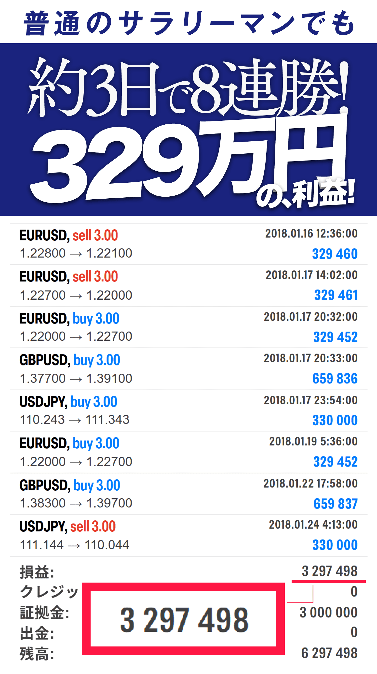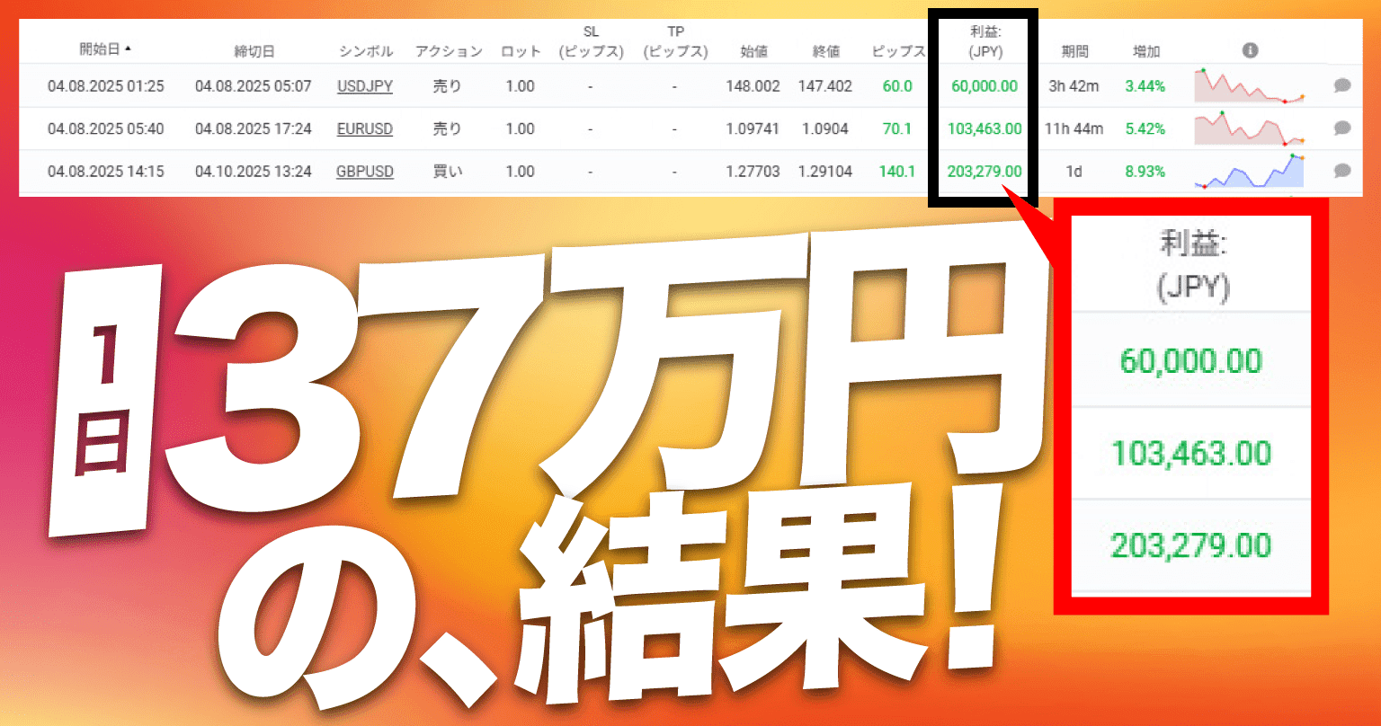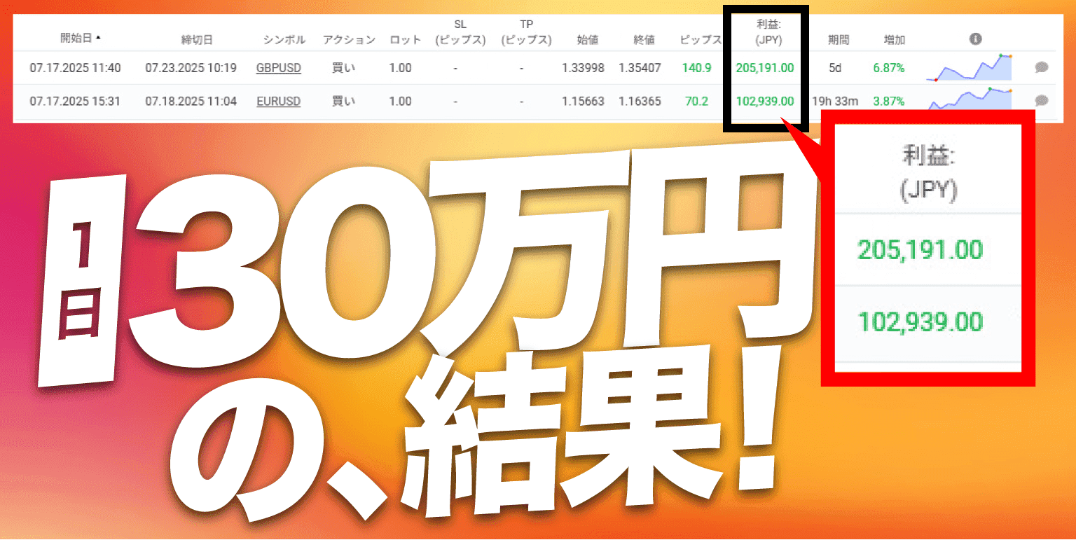 独自のFXスキャルピングロジックで「どう転んでも利益になる」ような方法論を確立して、自動トレードとしてシステム化させ、1日で20万円、50万円、100万円以上の利益を日常的に稼ぎ出す。
